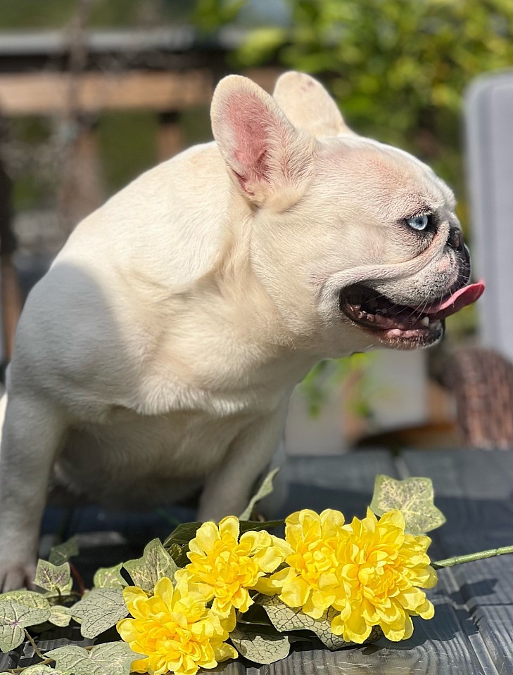 Strawsers Butterbean… aka pancake face! She is always on the go, and hard to get a good picture of! She’s 19 lb of pure spunk, with such a goofy personality. ButterBean comes from a long line of Strawser bloodlines!